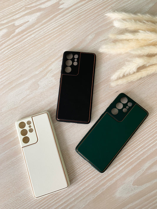 White Leather Samsung Case with Gold detail