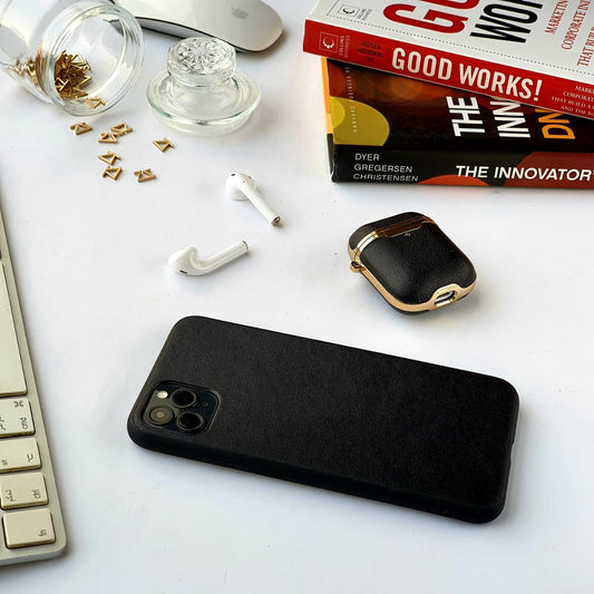 Black Leather Samsung Case with Gold detail